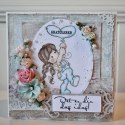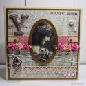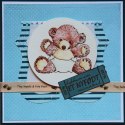 Jeg har brukt bingorekken: dies/puncher-tekst-perler. Har brukt digi fra DoctorDigi. Restepapir fra et ark jeg fikk forrige Ski-treff, brukt mine penner fra Copics til å fargelegge bestefaren som koser seg i stolen sin :). Litt gears fra Tim Holtz. Punchen ble kjøpt i romjulen og er fra Martha Stewart. Tekststempelet er gammelt. Perlene var hvite og ble fargelagt med Copics.